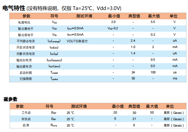 HAL1253是一颗微功耗、高灵敏度N极单极性的霍尔开关传感装置。