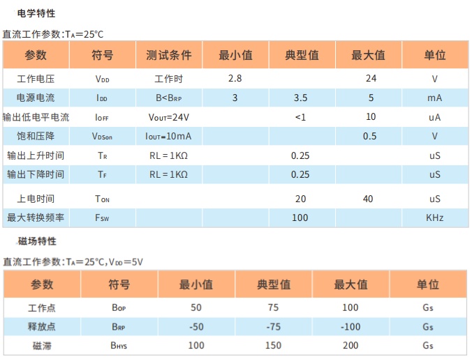 HAL3227是⼀款基于BiCMOS技术兼具⾼性能和⾼可靠性。霍尔IC内部包括⼀个⽚上霍尔电压发⽣器、⼀个⼯作电压为2.8V⾄24V的稳压器、⼀个⼩信号放⼤器、具有动态偏移消除功能的霍尔传感器、⼀个施密特触发器和⼀个漏极开路输出过流保护。