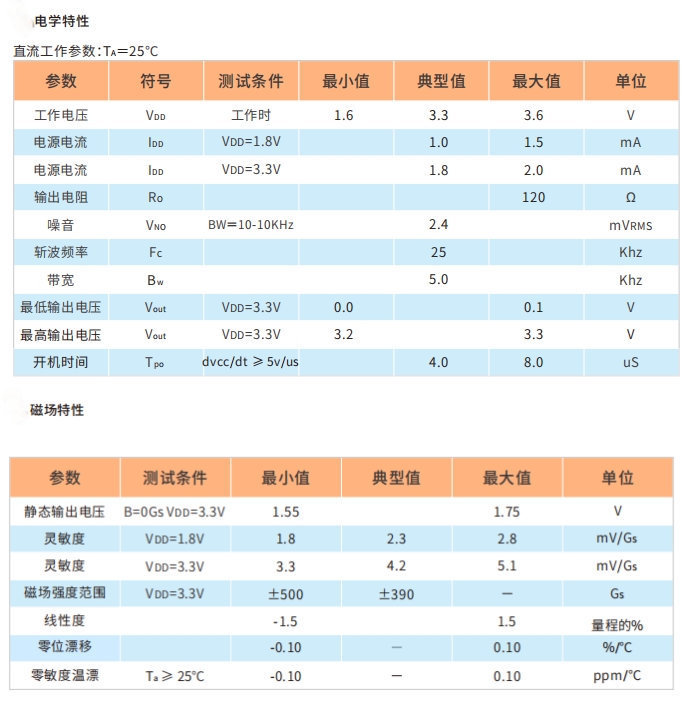 HAL9303R为⼩型、通⽤、线性霍尔效应传感器,其输出信号电平决定于施加在器件敏感⾯的磁场强度,随磁场强度成⽐例地变化。