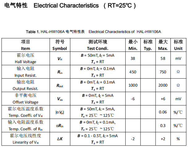 HAL-HW106A 电流型砷化镓霍尔元件也广泛的应用在电机位置检测:如电脑散热风扇,CD和DVD主轴电机,热水器电机,空调电机,洗衣机电机,冰箱电机,磁悬浮等等和磁场大小检测:如磁编码器,磁场检测仪,地磁检测仪器,电子指南针,测距仪等等。