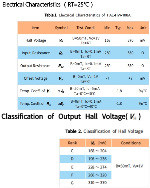 HAL-HW108A 锑化铟霍尔元件也广泛的应用在电机位置检测:如电脑散热风扇,CD和DVD主轴电机,热水器电机,空调电机,洗衣机电机,冰箱电机,磁悬浮等等和磁场大小检测:如磁编码器,磁场检测仪,地磁检测仪器,电子指南针,测距仪等等。